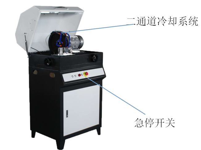 該機(jī)是采用雙罩殼全封閉結(jié)構(gòu)和快速夾緊機(jī)構(gòu)。可保證在絕對(duì)安全狀態(tài)下進(jìn)行切割試樣,該機(jī)裝置有前、后、左、右拖板試樣的厚薄可任意調(diào)整,進(jìn)給速度可操控。